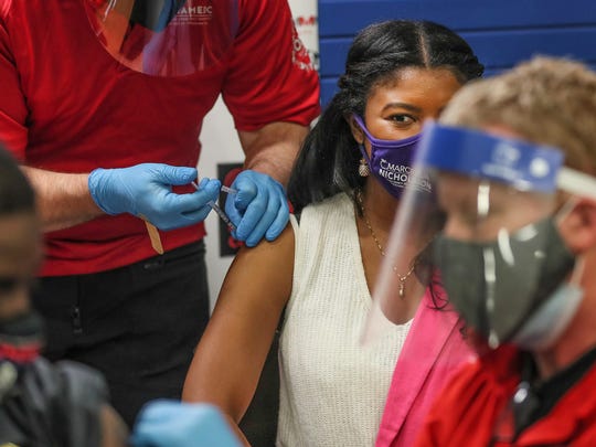 Milwaukee County Board Chairwoman Marcelia Nicholson gets her first dose of the Moderna COVID-19 vaccine March 23 in Wisconsin. (Photo: Ebony Cox/Milwaukee Journal Sentinel)